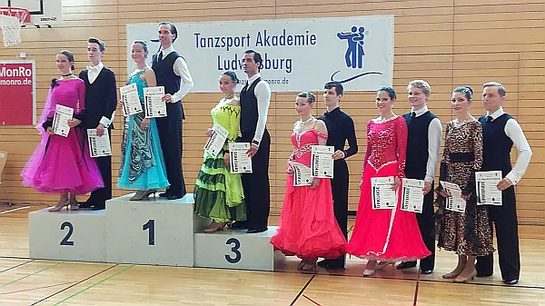Am Samstag, den 08.07.2017 wurden die Standard - Turniere in der Tanzschule MonRo ausgetragen. Dabei gingen Ben Englisch und Nicole Krom in der Junioren I + II D Standard an den Start. Die beiden hatten sich sehr viel vorgenommen und erreichten in ihren ersten Standardturnieren einmal den 3. Platz von 3 Paaren und in der Junioren I D Standard schafften sie einen tollen 3. Platz von 6 Paaren.