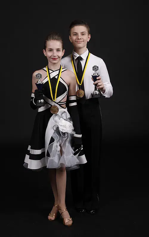 Dabei sind in der JUN II D Latein, Ben Englisch und Nicole Krom mit weiteren 12 Paaren aus dem Ländle an den Start gegangen, um ihren Landesmeister zu ermitteln. Mit der höchsten Anzahl an Kreuzen, die die Wertungsrichter zu vergeben hatten, haben sich die Beiden souverän in das Finale getanzt. Im Finale konnten sie ihre tänzerischen Leistungen erneut toll präsentieren und alle drei Tänze, Cha Cha, Rumba und Jive gewinnen. Somit haben Ben und Nicole das Turnier als Landesmeister der Junioren II Latein beendet und sind damit auch in die nächste höhere Klasse, die C-Klasse aufgestiegen.
