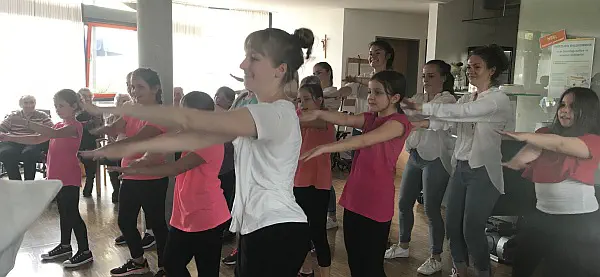 Zum Abschluss tanzen noch alle auf ein poppiges Lied und abschließend verabschiedeten sich die Dance-Styles Gruppen an diesem sonnigen Tag mit Blumen und Schokolade für die Bewohner. Die Dance-Styles Gruppen hatten sehr viel Spaß an dem Nachmittag und freuen sich, die Bewohner bald wieder zu besuchen.