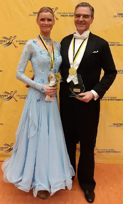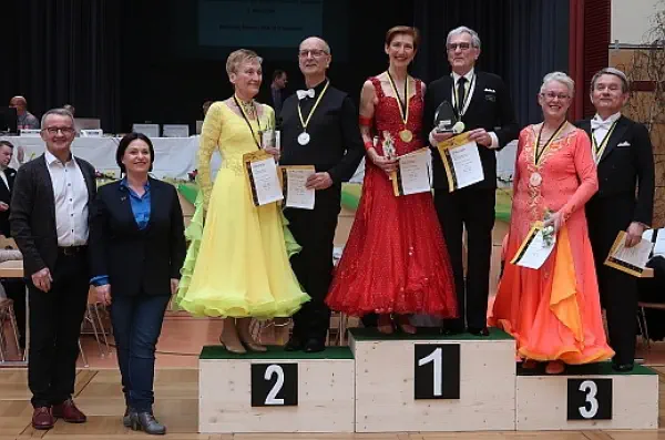 Als erstes Sindelfinger Paar gingen Bernd und Ingrid Peter in der SEN IV B an den Start. Leider war das Starterfeld nur mit 3 Paaren besetzt. Bernd und Ingrid konnten von Anfang an überzeugen und haben den Langsamen Walzer, den Tango und den Wiener Walzer für sich entschieden. Ganz knapp, mit nur einem halben Punkt Unterschied haben die beiden die Goldmedaille verpasst. Am Ende wurden Bernd und Ingrid Vizelandesmeister und konnten sich sehr über ihre Silbermedaille freuen.