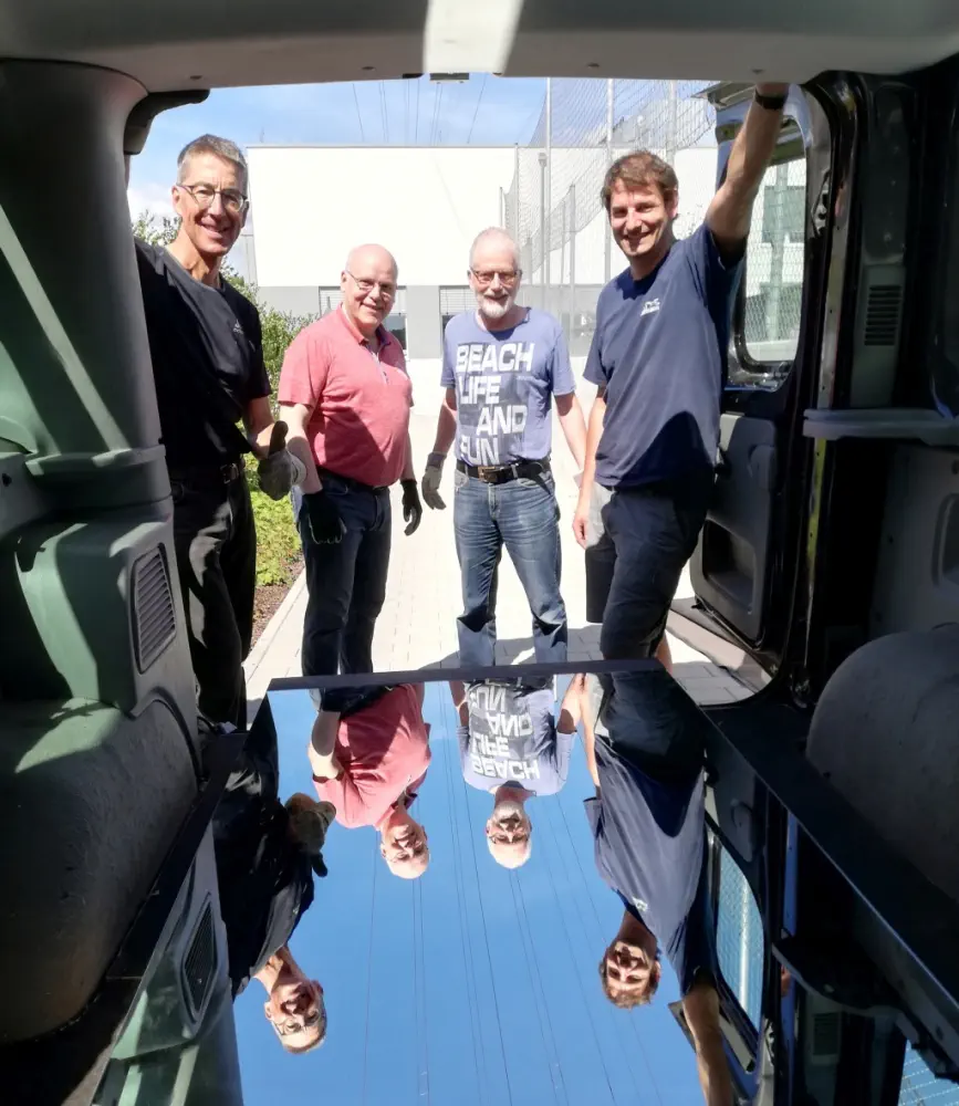 Zweite Tour: Vier große Spiegel für das Vereinsheim – jetzt doch lieber vorsichtig um die Gullideckel herum fahren.