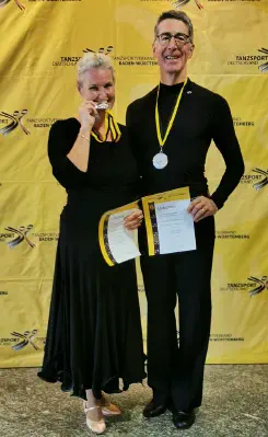 In der Senioren III D-Klasse morgens um 10:00 Uhr mit am Start waren vom TSC Petra und Jürgen Kohler. Mit ihrem dynamischen und harmonischen Tanzen überzeugten sie die sieben Wertungsrichter voll, sodass sie ohne Problem in das 6-Paarige Finale einzogen. Dort waren die Wertungen von Anfang an recht gemischt, aber es waren auch einige Einsen dabei. In der Endabrechnung wurde es der zweite Platz und somit der Vizelandesmeister in dieser Klasse.