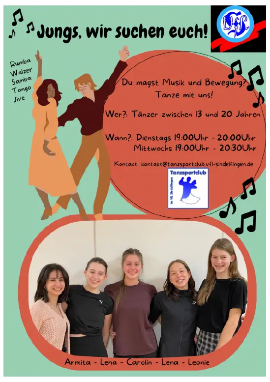 Unseren Trunieraufbaugruppen Standard und Latein fehlt dringend männliche Unterstützung. Ready for the challenge?
