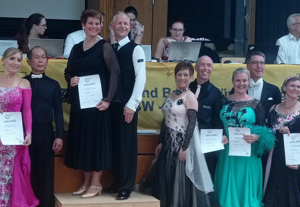 Eine gleiche Anzahl an Kreuzchen in der Zwischenrunde bedingte ein Finale mit insgesamt sieben Paaren. In diesem Finale haben sich Petra und Jürgen trotz der großen Hitze in der Halle gut präsentieren können. Das Endergebnis ist ein guter 4. Platz mit einem 3. Platz im Wiener Walzer und auch teilweise besseren Wertungen als dem 4. Platz in den Einzeltänzen.