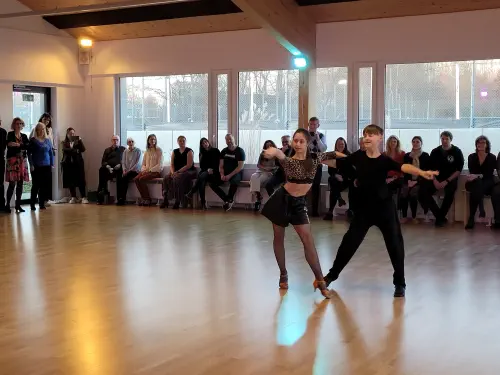Ein paar besondere Programmpunkte und Überraschungen hielt der Nachmittag für die Gäste bereit: Unter großem Applaus tanzte unser Juniorenpaar Philipp Baal und Letizia Lis einen Cha Cha. Die Zuschauer wollten sich natürlich nicht mit nur einem Lateintanz zufrieden geben, und so zeigten die Beiden gleich noch mit einer Rumba, wie gut sie auf die anstehende Latein-LM in ihrer neuen Altersklasse vorbereitet sind. Für den Tango erschienen die Beiden dann in neuem Outfit, Letizia mit einem feuerroten Rock. Als Zugabe tanzten die Beiden dann noch einen Langsamen Walzer.